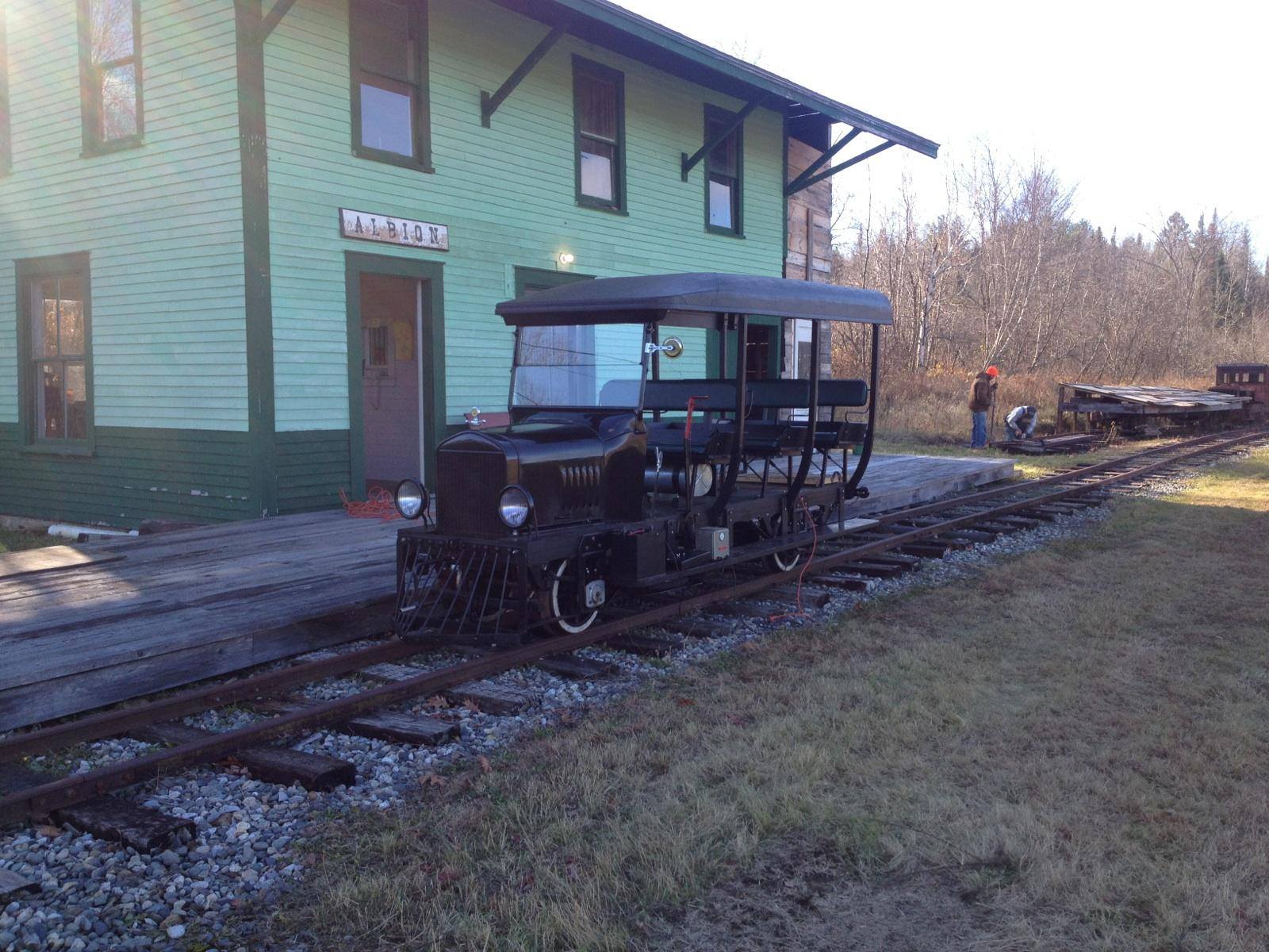 WW&F Model T railcar No. 4 at the Albion, ME, WW&F station during Albion Day in November 2013.  Stewart Rhine photo.