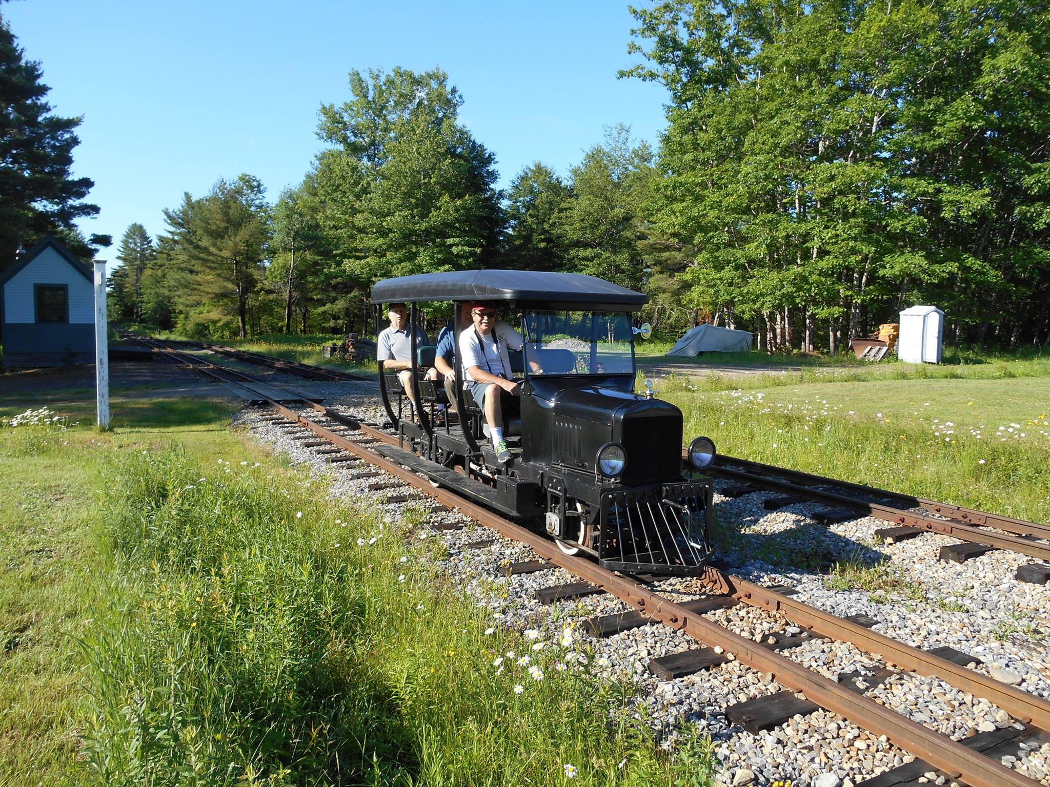 WW&F railcar No. 4 was built over a number of years by volunteer Leon Weeks. The car arrived for good to the Museum in 2010, and underwent a period of troubleshooting before it became operational. The vehicle has a Model T automobile engine, mounted in a brand-new body. The railcar is modeled after an existing railcar, a former Sandy River & Rangeley Lakes Railroad track car, which went to the Edaville Railroad and now resides at the Owl’s Head Transportation Museum.